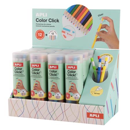 Színes töltőceruza készlet, display, APLI "Color Click", 12 különböző szín, 12 készlet/display
