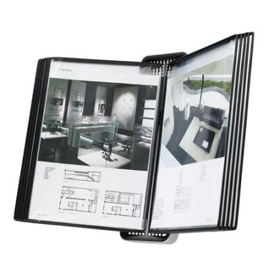 Bemutatótábla tartó, fali, A4, 10 db bemutatótáblával, DJOIS "Veo", ezüst-fekete